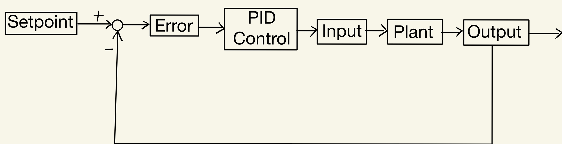 The difference between the Setpoint and the Output is called the "Error" or the "Error Term". If the output is exactly the same as the Setpoint, the Error will go to zero, which is our goal.