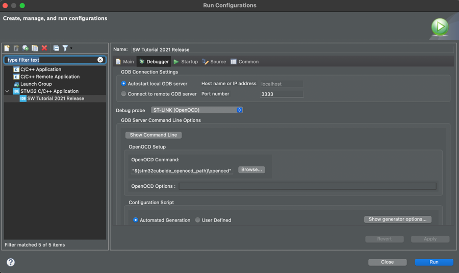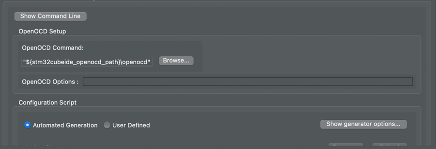 ST-LINK (OpenOCD). Also double check that the OpenOCD command is the same as the one in the image above.