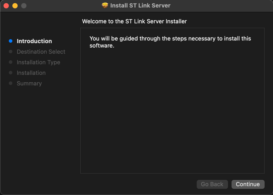 You will now proceed to install st-stlink-server.2.1.0-1.pkg